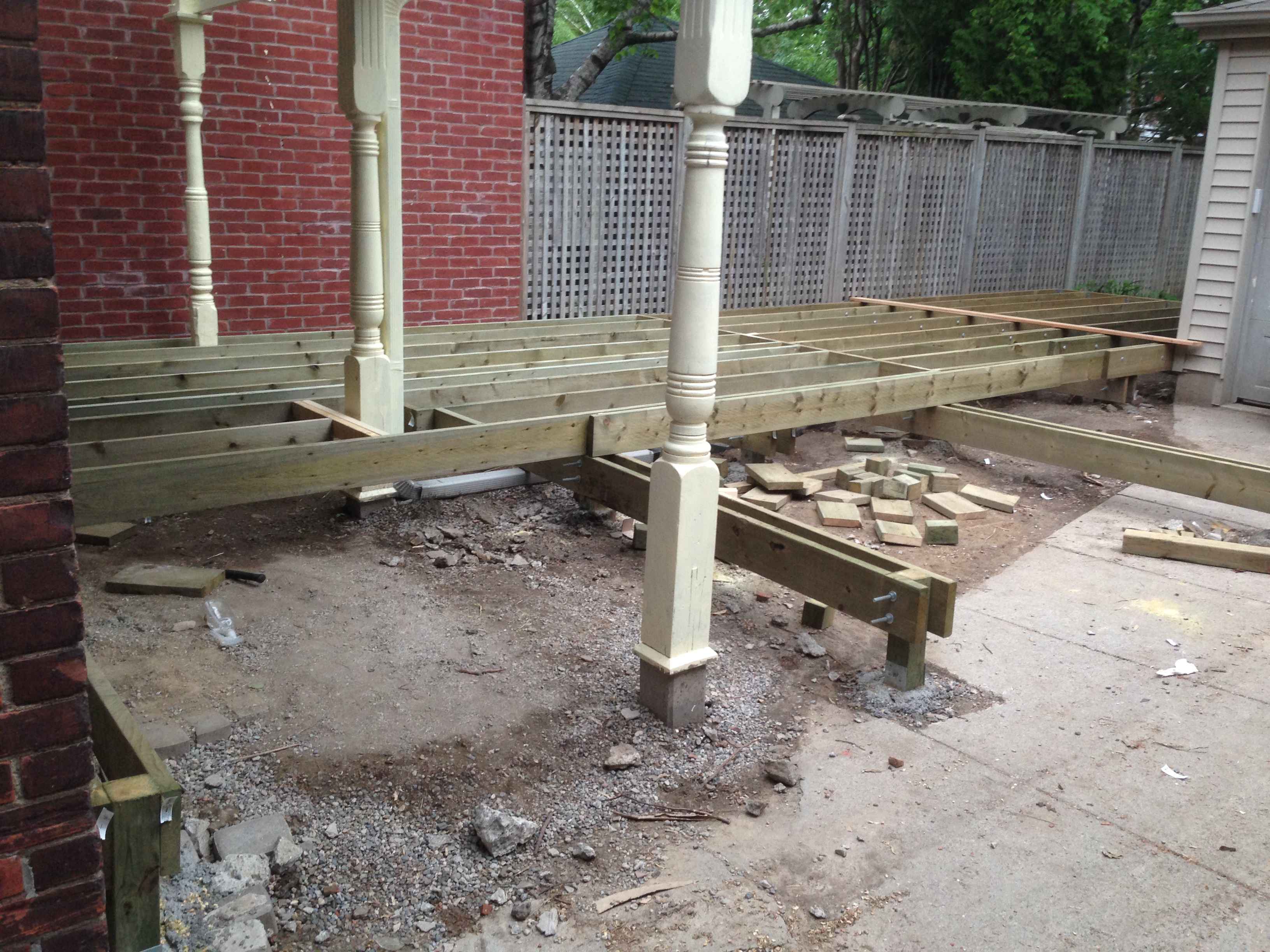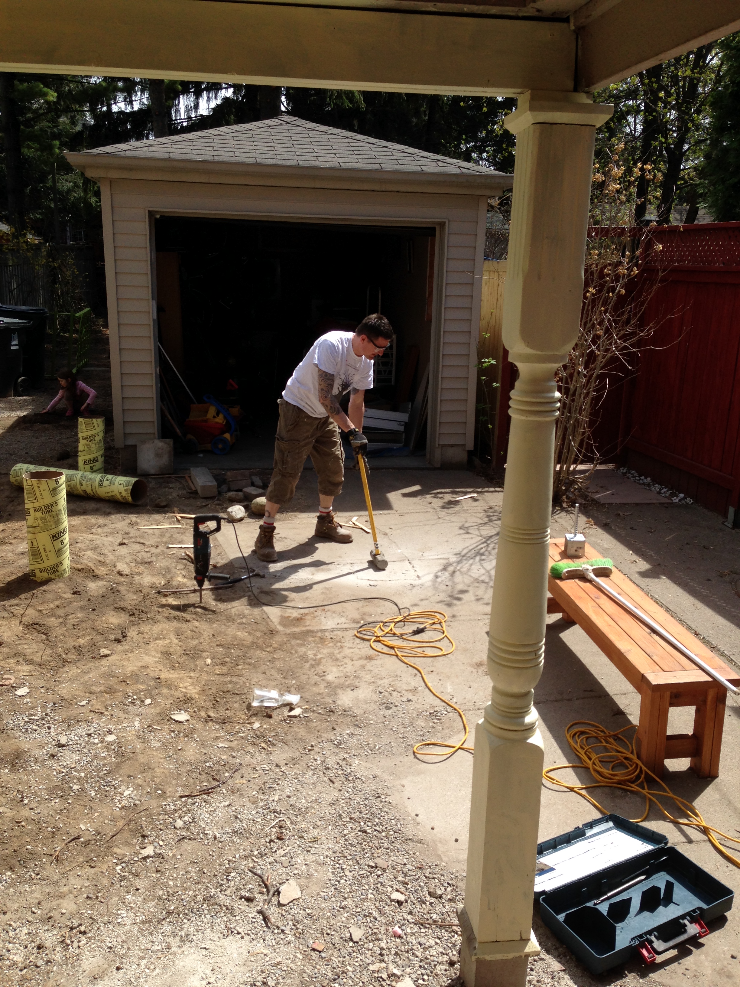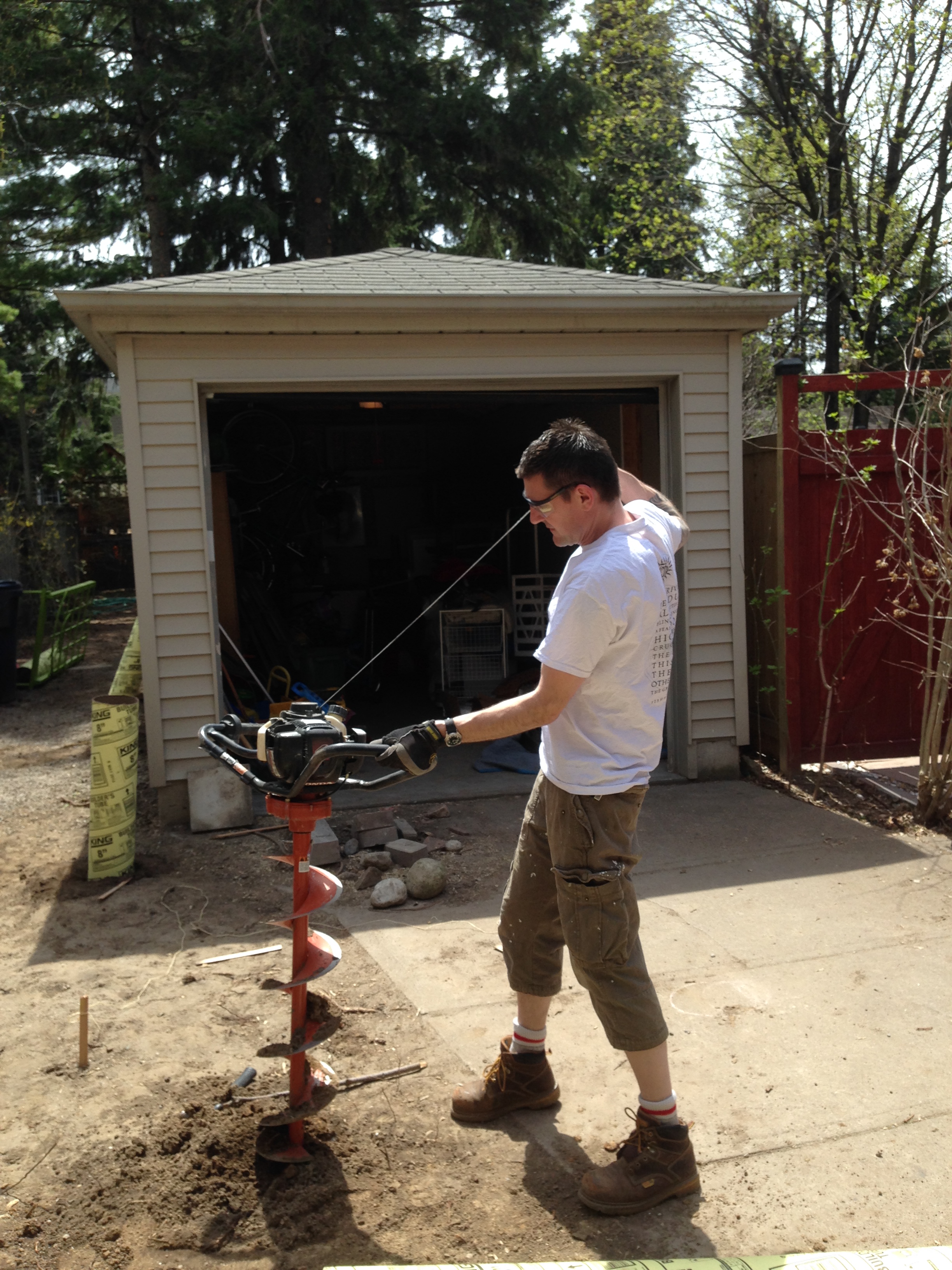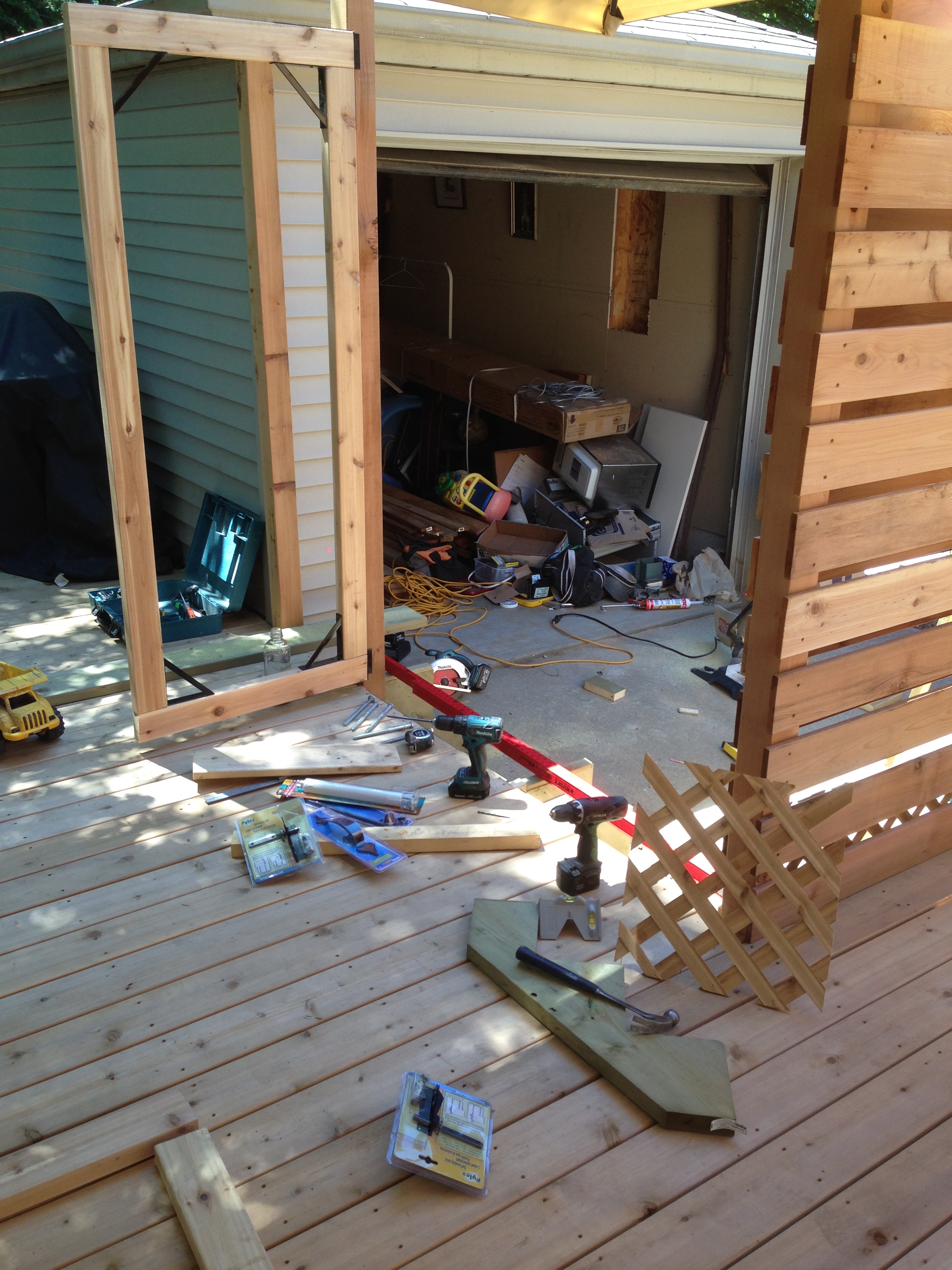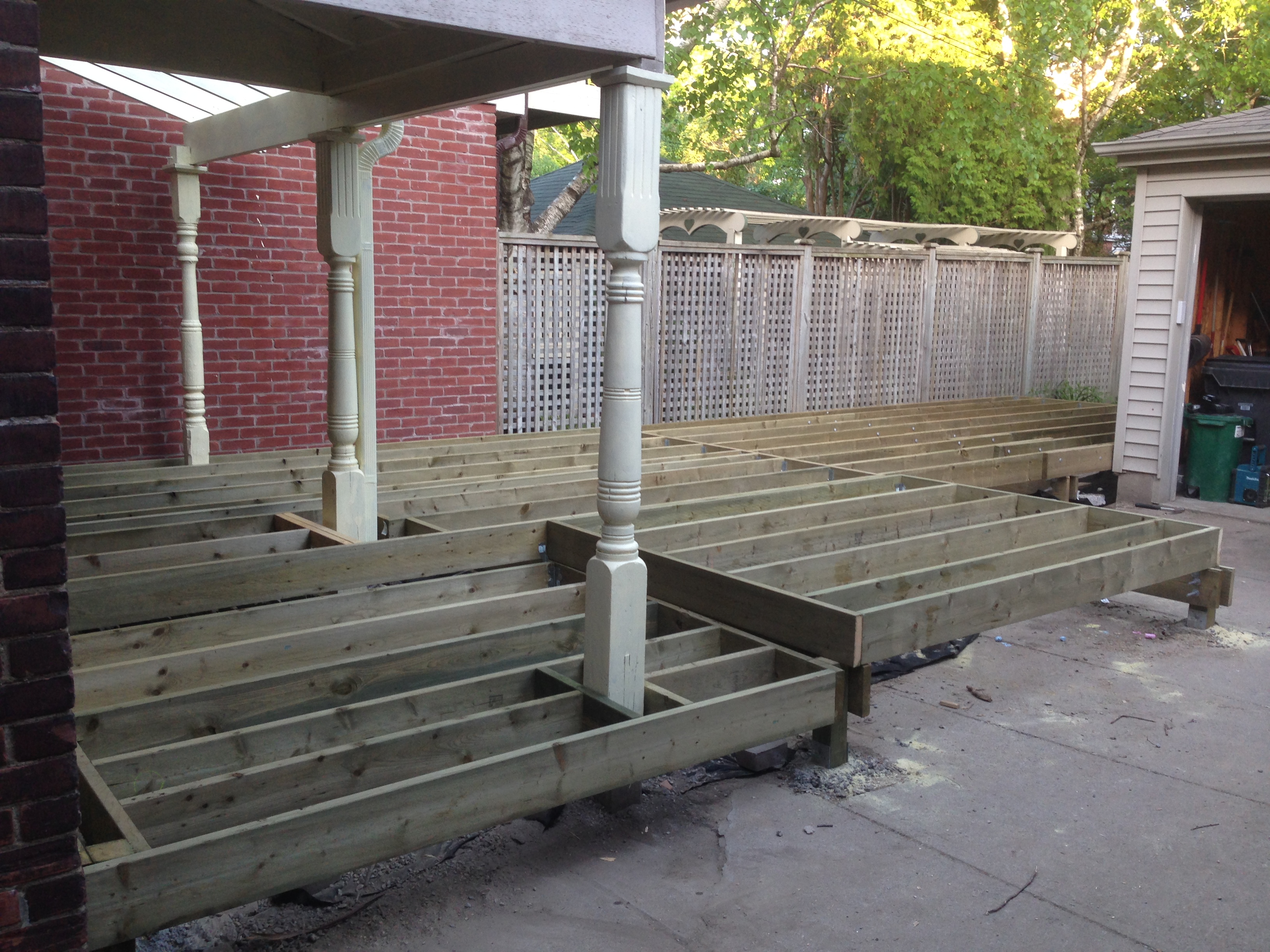 We moved into our new house in May ’13 – The following spring it was decided a major deck was in order. 1 – to keep the kids some what ‘fenced in’ (it was open before and from the back door could walk to the road). Now you can open the door and let them play away in safety. And 2 – the space was unpractical before, especially for 3 young kids. I’d never built a deck before, but I loved every minute of it.