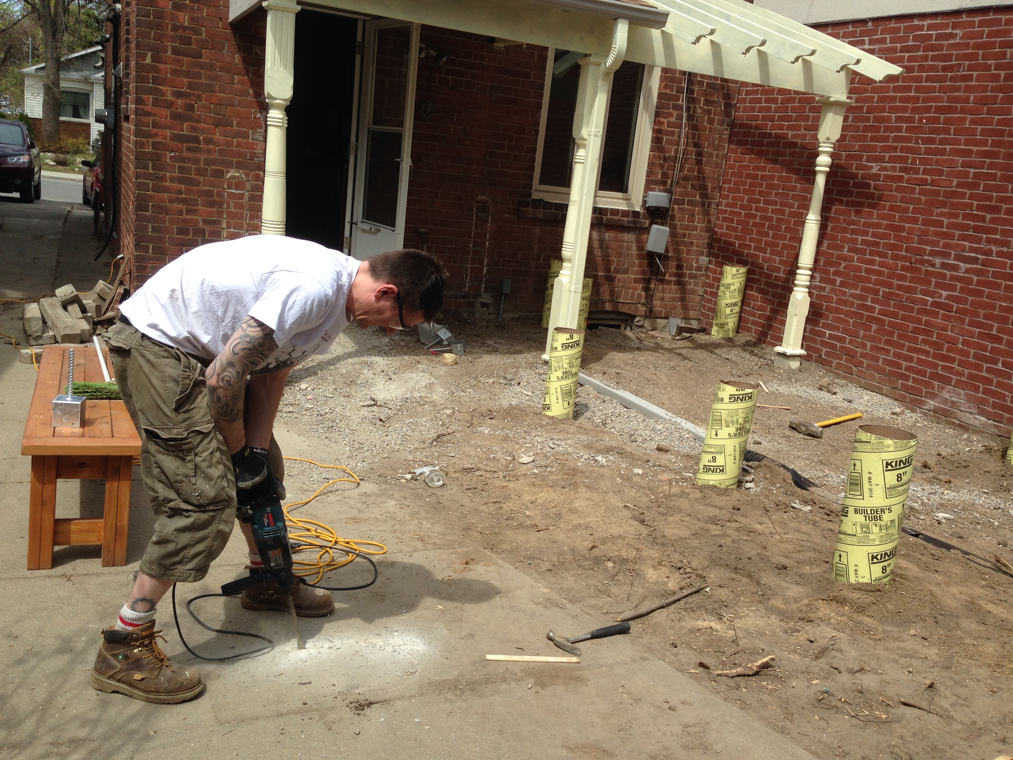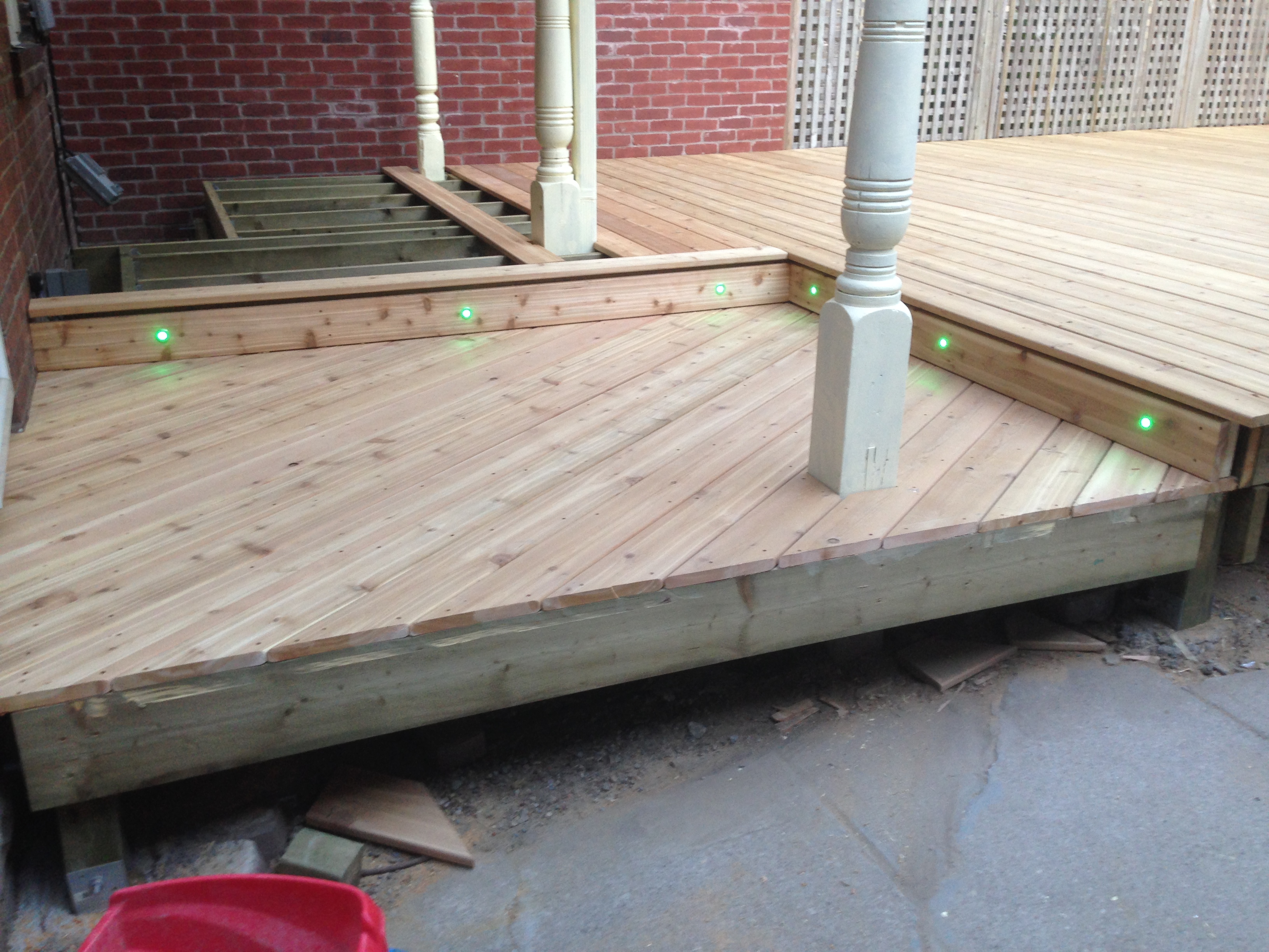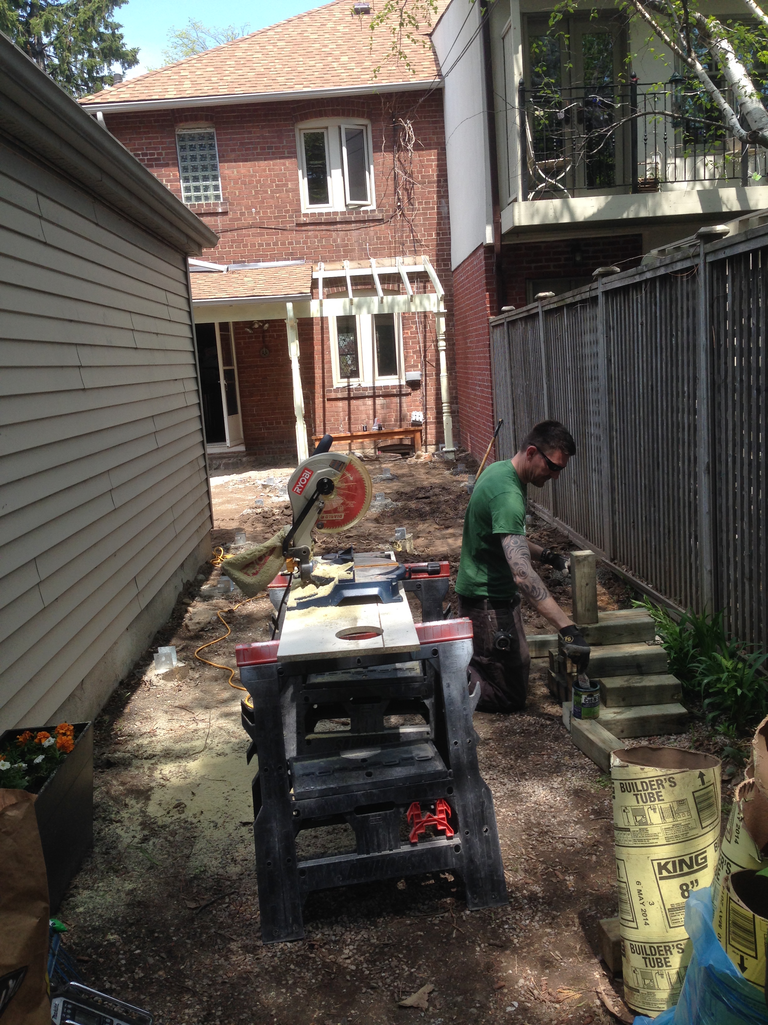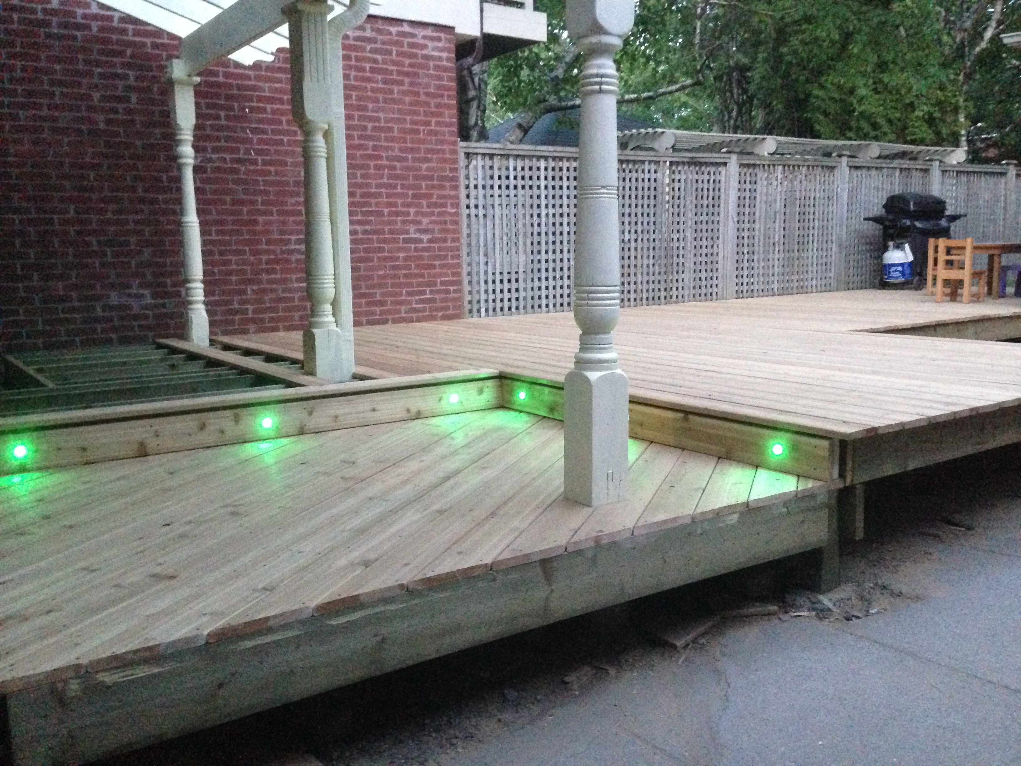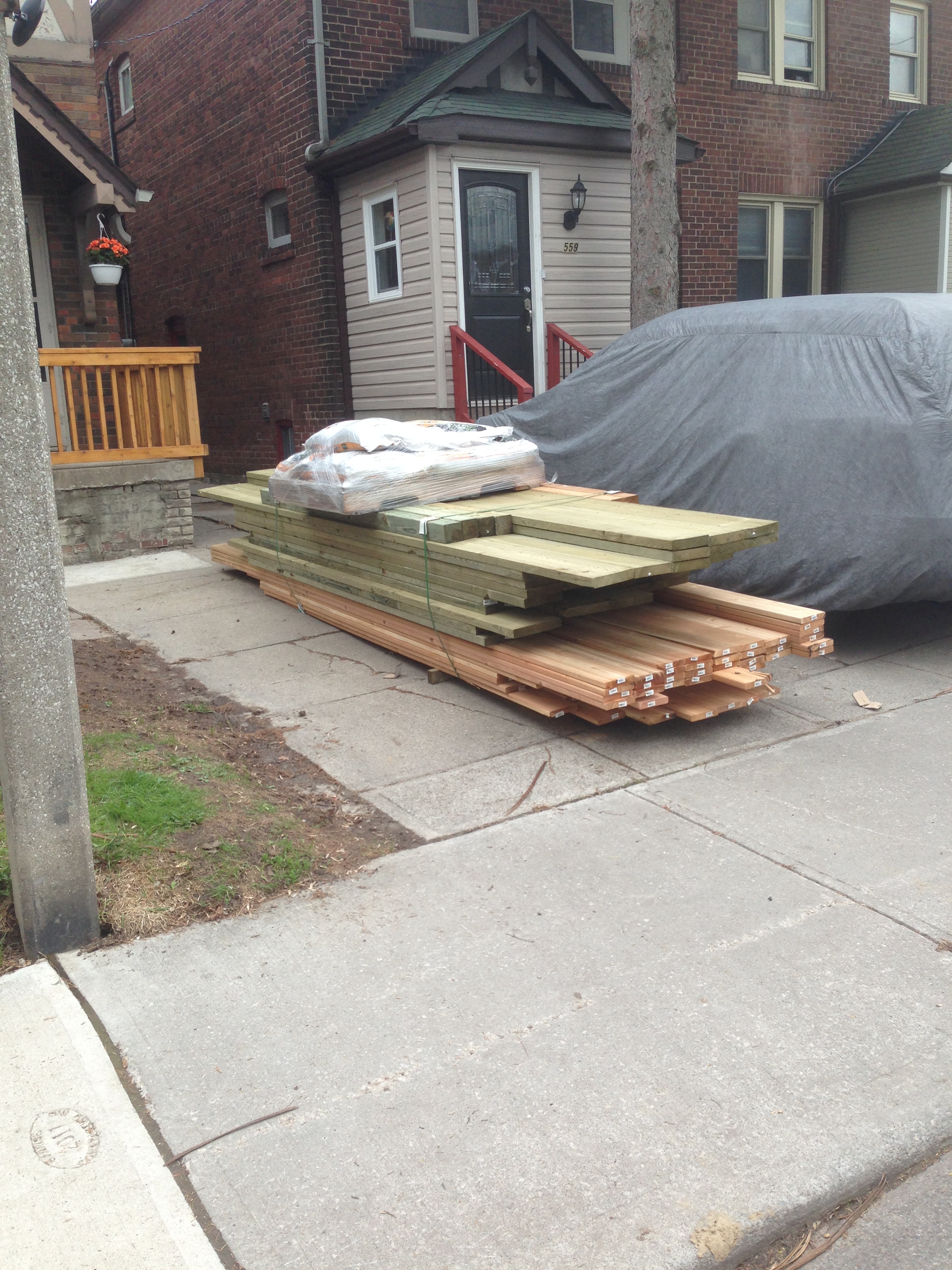 We moved into our new house in May ’13 – The following spring it was decided a major deck was in order. 1 – to keep the kids some what ‘fenced in’ (it was open before and from the back door could walk to the road). Now you can open the door and let them play away in safety. And 2 – the space was unpractical before, especially for 3 young kids. I’d never built a deck before, but I loved every minute of it.