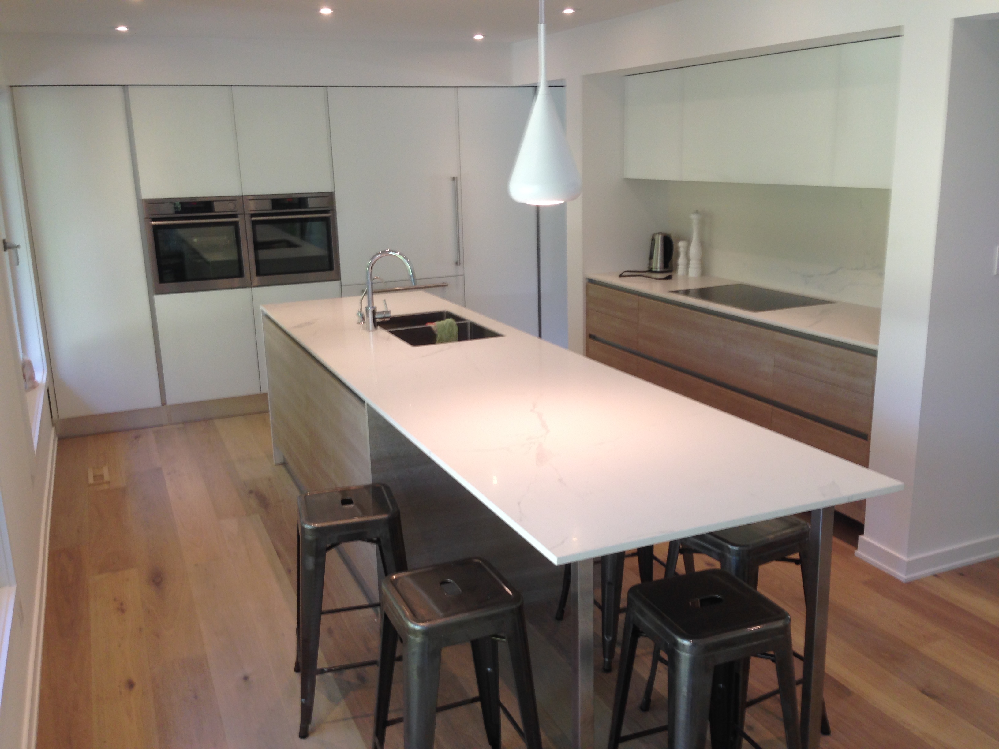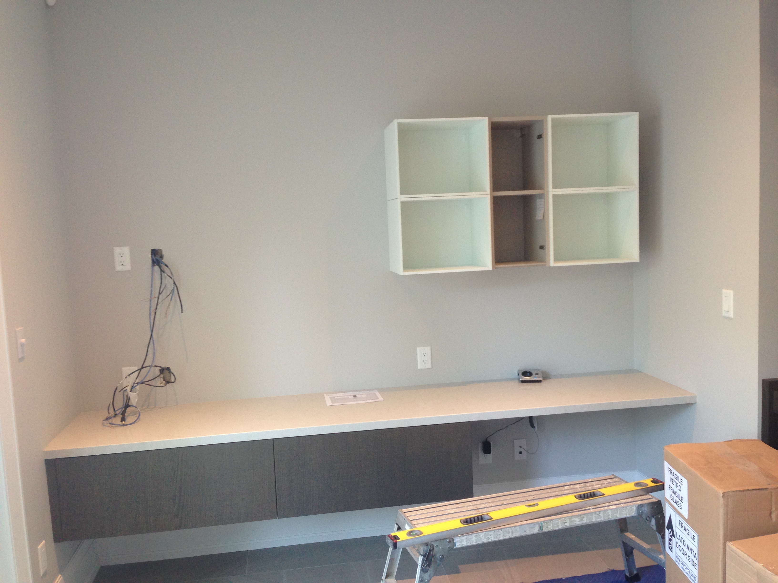 Here’s a before and after pic of a job I did. After a few months the client wanted more storage so we added these extra cabinets. The original ones had to be taken down and moved to the left. Looks so much better now.